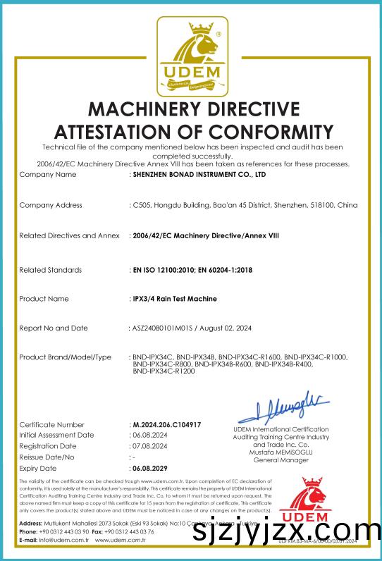 “SHENZHEN BONAD INSTRUMENT CO.,LTD had got the MACHINERY DIRECTIVEATTESTATION OF ...